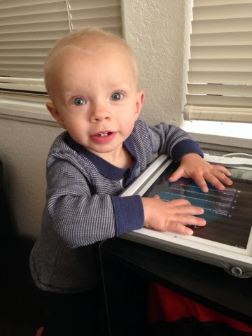 Jaxon gets a kick out of putting his toys on his head. He will even look at me to see what my reaction is and wants me to clap.